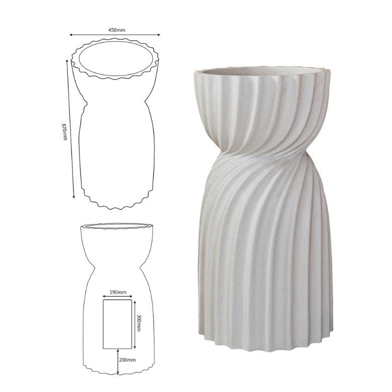 A sculpted pedestal basin with a graceful twisted silhouette, blending artistic form and modern minimalism to create a serene, luxurious focal point in any contemporary bathroom.